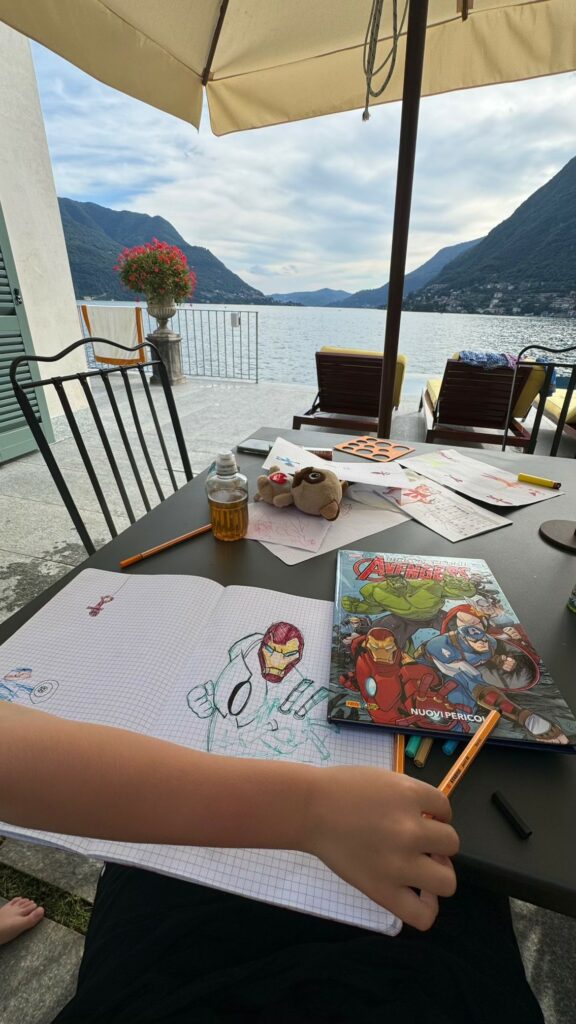 Federico Lucia si tuffa in acqua, fa lo stesso con i bimbi e il quattro zampe, asciugato continuamente. Poi disegna gli Avengers per i piccolini, dedica i suoi capolavori a Leo e Vitto. La principessina di casa è talmente orgogliosa da voler appendere il fumetto nella sua camera.