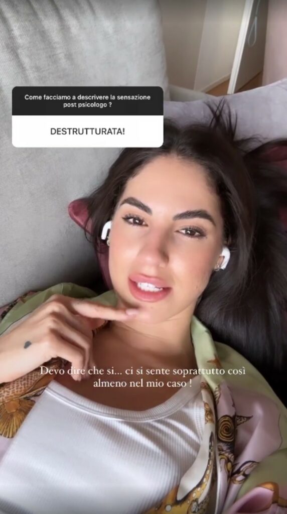 Giulia De Lellis nelle sue storie, rivolgendosi ai tanti fan, parla di traumi e psicologo. Cerca di descrivere la sensazione provata dopo una seduta dall’analista. Sdraiata sul divano di casa a Milano, appena tornata dalla terapia, cerca di far capire come si senta in quel preciso momento.