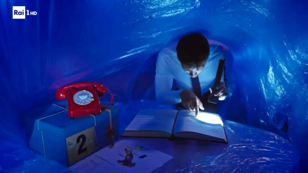 Stefano è nello storico studio del Teatro delle Vittorie, dove si registra Affari Tuoi. Risponde al telefono, che torna rosso, abbandonando così lo smartphone dell’ultimo periodo. Accanto ha un pacco azzurro, legato, come era prima, con lo spago. “Dottore, pronto, sì, la Rai ha accettato lo scambio”, dice ironico il napoletano. Poi aggiunge: “Io la ringrazio e vado avanti, arrivederla”.