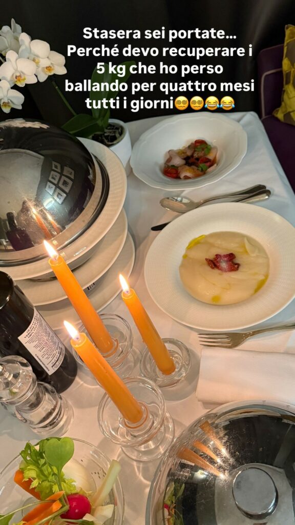 “Stasera sei portate perché devo recuperare i 5 kg che ho perso ballando per quattro mesi tutti i giorni”, svela Barbara su Instagram. E’ sotto i suoi standard e ha bisogno di riprendersi, piano, piano.