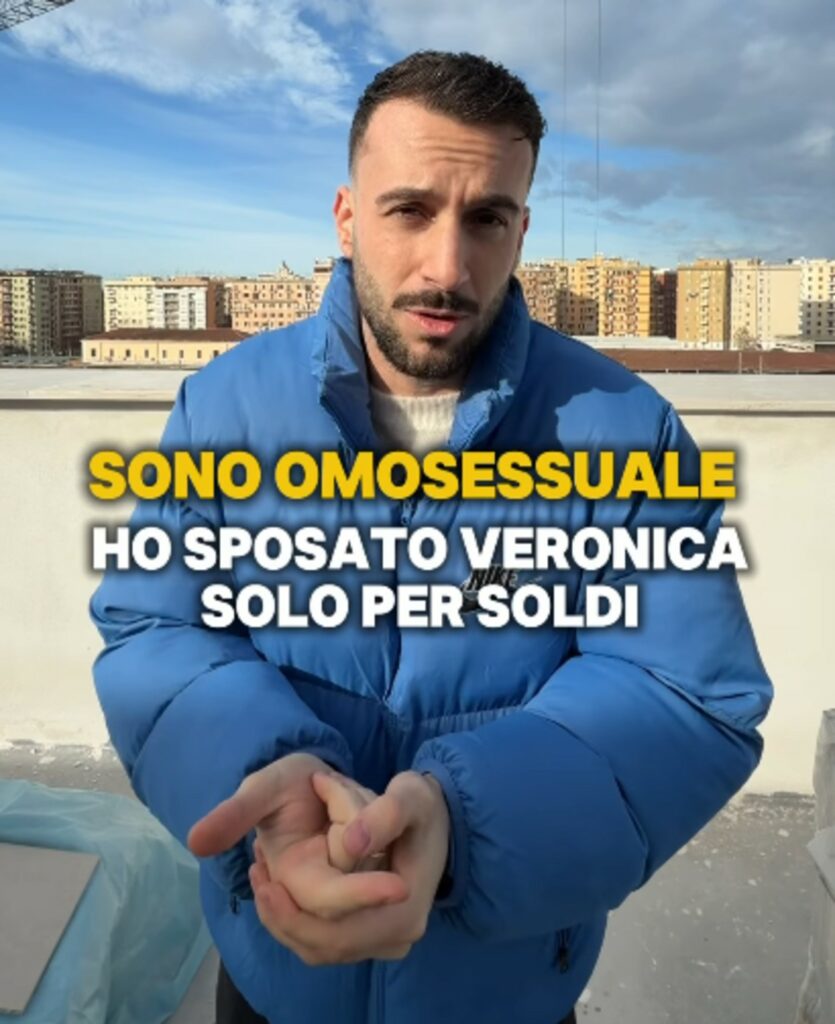 “Sono dichiaratamente omosessuale, ma mi sono sposato con Veronica Peparini per vincere Amici, per aprire il mio negozio e per comprarci l'attico, ma soprattutto per ereditare tutti i suoi soldi”, esordisce il ballerino. “La verità è che parlate, ma non sapete un caz*o. Non è da me essere maleducato sui social, ma è arrivato il momento di dare spiegazioni”, precisa
