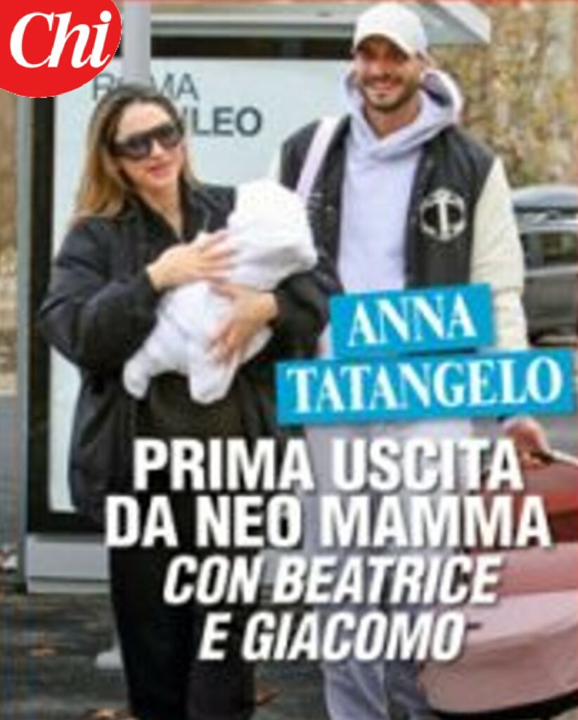 Sorride raggiante e tiene la neonata dolcemente tra le sue braccia. Anna Tatangelo e Giacomo Buttaroni portano la loro figlia Beatrice alla prima visita medica: la foto la pubblica Chi sulla cover. Il settimanale titola: “Anna Tatangelo, prima uscita da neo mamma con Beatrice e Giacomo”.