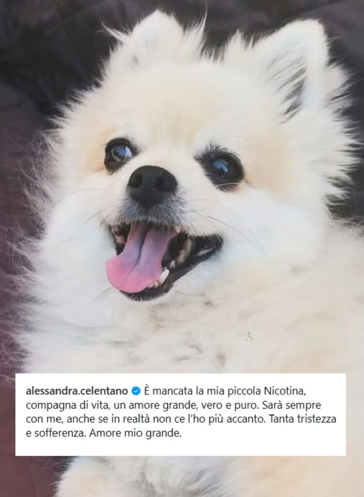Le stava accanto sempre, accompagnandola nei momenti giocosi, ma anche in quelli bui. Alessandra Celentano piange un’amica fedele. In un addolorato post annuncia la morte della sua adorata cagnolina. Si chiamava Nicotina ed era un Volpino candido. “Tanta tristezza e sofferenza”, scrive la professoressa di Amici.