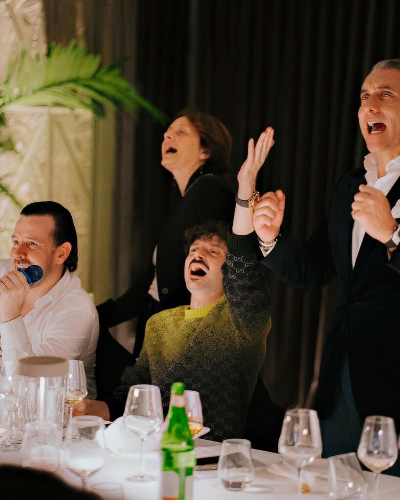 Due lunghe tavolate accolgono gli invitati, circa cinquanta persone. Tra i vip presenti impossibile non notare Annalisa, Michelle Hunziker, l’ex vincitore del Grande Fratello Jonathan Kashanian e Giuseppe Cruciani, voce storica de La Zanzara.