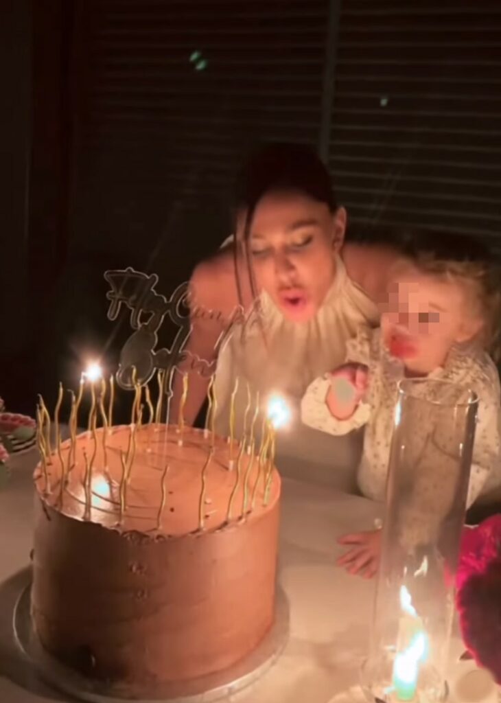 Belen ha spento le 40 candeline sulla torta, su cui era stata aggiunta la scritta "Feliz Cumple", insieme alla figlia Luna Marì, che, come la mamma era vestita in bianco con una blusa tempestata di fiorellini.