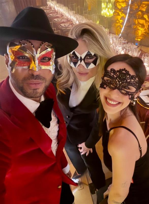 Il dress code sembra aver previsto anche una maschera sul viso stile carnevale di Venezia.