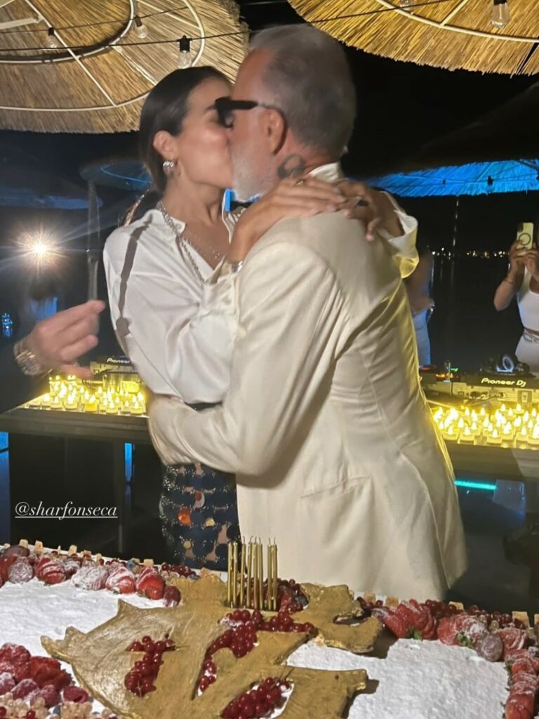 Gianluca Vacchi festeggia 58 anni in Sardegna, in Costa Smeralda.L’imprenditore e influencer sceglie un completo bianco per la sua serata mondana di celebrazioni. Arriva con la compagna 30enne Sharon Fonseca, con cui l’amore va sempre a mille.