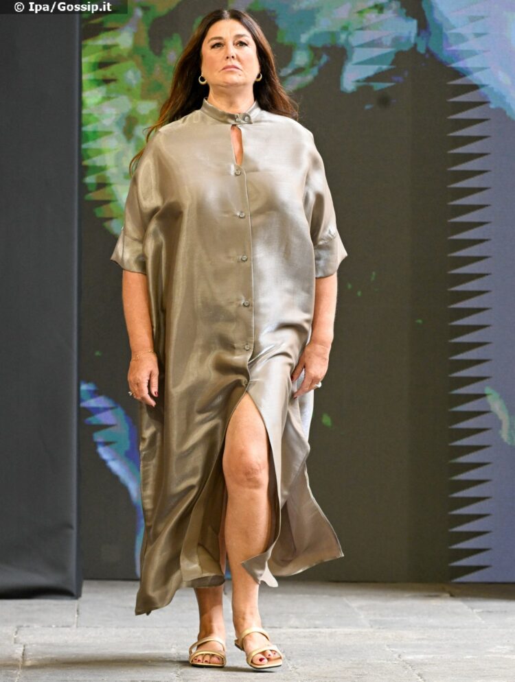 Prima volta per la mamma di Belen Rodriguez bellissima negli abiti di Martino Midali alla Milano Fashion week.