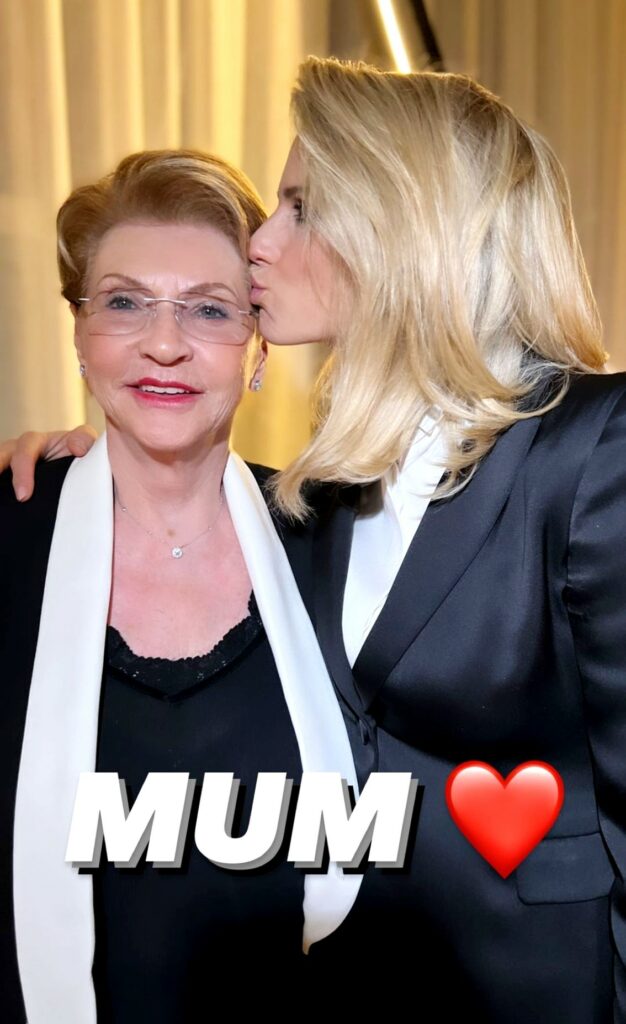 Elegantissime ed emozionate mamma e figlia nella serata milanese. E' l’ultimo compleanno di Michelle prima di diventare nonna del maschietto in arrivo.