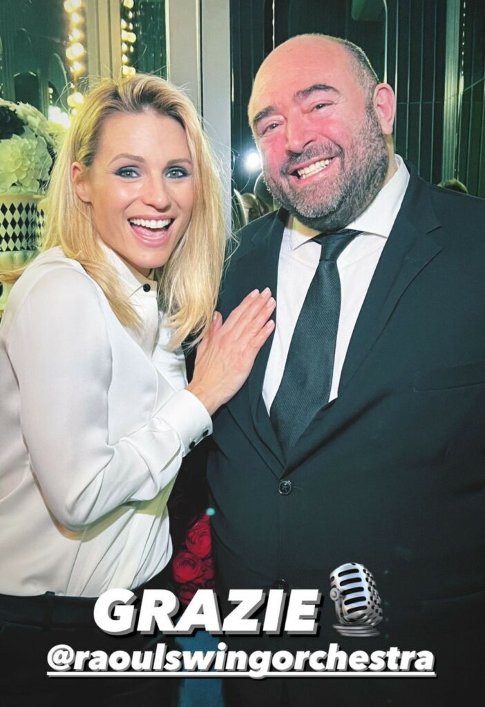 Ristorante giapponese, ma musica swing per la serata dedicata a Michelle. Ex moglie di un cantante, per la Hunziker la musica è una cosa seria e ha voluto un intrattenimento musicale che facesse scatenare gli ospiti.