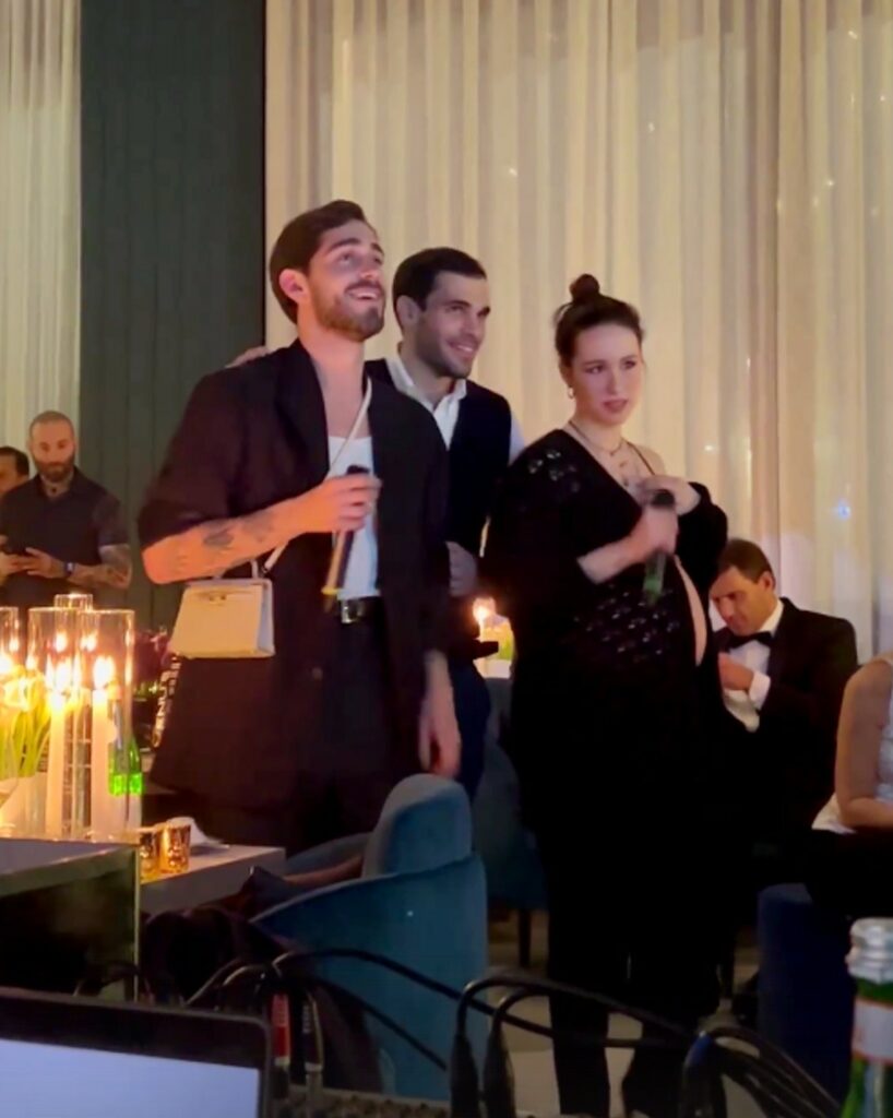 La coppia di cantanti è in dolcissima attesa. La Zilli, 42 anni, è molto riservata sulla gravidanza, ma non poteva mancare al compleanno di Michelle dove non si è risparmiata tra karaoke e balli.
