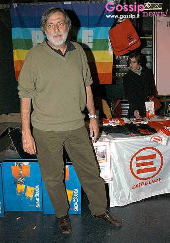 Gino Strada davanti allo stand di Emergency