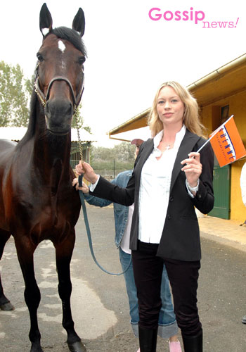 Anna Falchi, madrina del Derby Italiana del Trotto con il 'Campione' Varenne