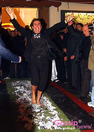 Giucas Casella cammina sui carboni ardenti