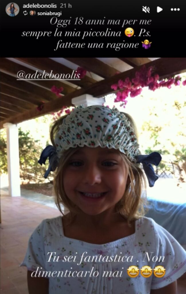 “Tu sei fantastica. Non dimenticarlo mai”, le sottolinea la Bruganelli, che è anche genitore di Silvia, 22 anni, e Davide, 21. Sonia condivide anche uno spiritoso video di Adele bambina e ironizza tenera: “Se il buongiorno si vede dal mattino…”.
