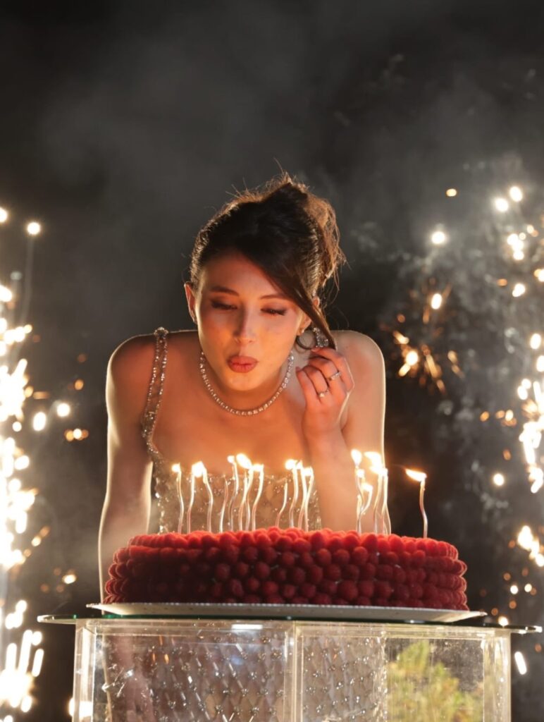 La ragazza sorride tra gli ospiti, parenti e amici, balla e si diverte. Il momento della torta è all'aperto, nel grande giardino della villa: il dolce è un trionfo di lamponi. Mya regala anche un cambio di outfit: per spegnere le candeline indossa un mini abito dorato delizioso. Sta accanto alla adorata mamma e guarda in cielo i fuochi d’artificio che illuminano una notte magica tutta dedicata a lei.