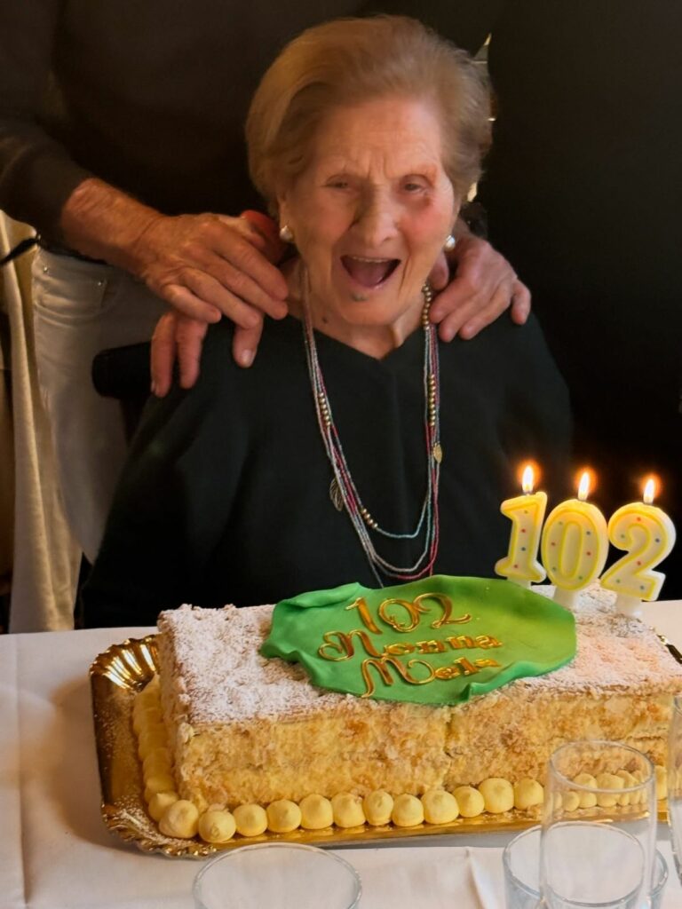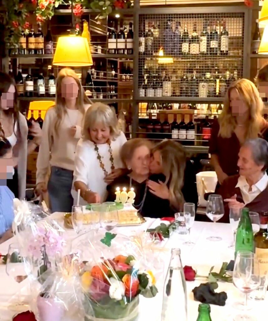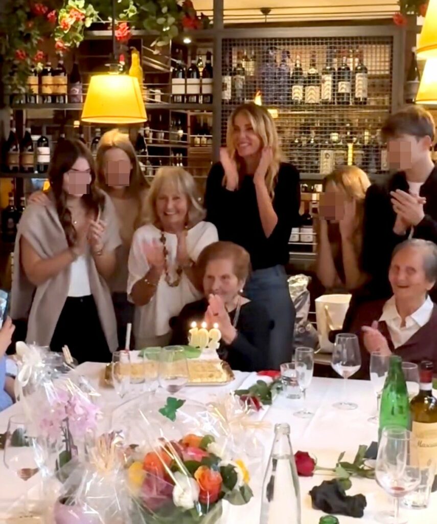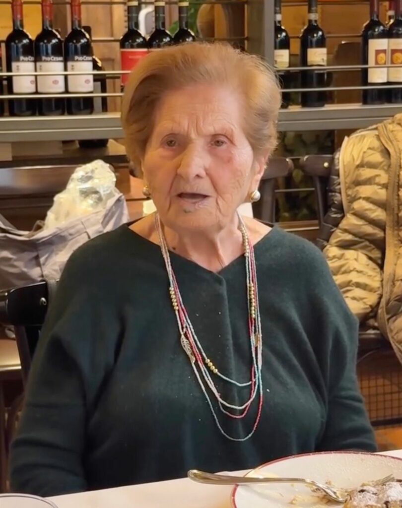 Alessia Marcuzzi celebra in un ristorante a Roma i 102 anni dell’amatissima nonna Mela, a cui è legatissima. Nonna Mela è il soprannome affettuoso per Carmelina Marcuzzi, la nonna materna di Alessia, originaria di Roseto Valfortore, Foggia, in Puglia. Insieme alla conduttrice 52enne ci sono tutti: i due figli e tanti parenti. Presenti, ovviamente, la madre de La Pinella, Antonella, con le zie, figlie della donna. Tra gli ospiti anche Fabrizio Biggio, conduttore e attore, ‘spalla’ di Fiorello in radio e tv, sposato con la cugina della presentatrice, Valentina De Ceglie.