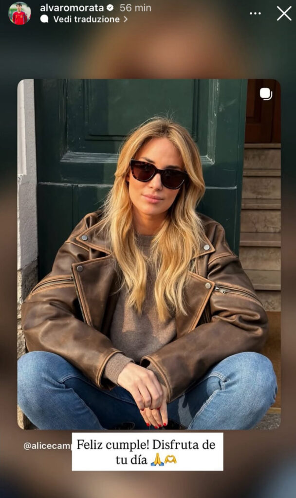 Morata ha ripubblicato nelle sue Instagram Stories un contenuto condiviso da Alice, quello in cui l’influencer scriveva “Ultimo giorno da 30enne”, accompagnandolo con un messaggio semplice: “Buon compleanno! Goditi la tua giornata”.