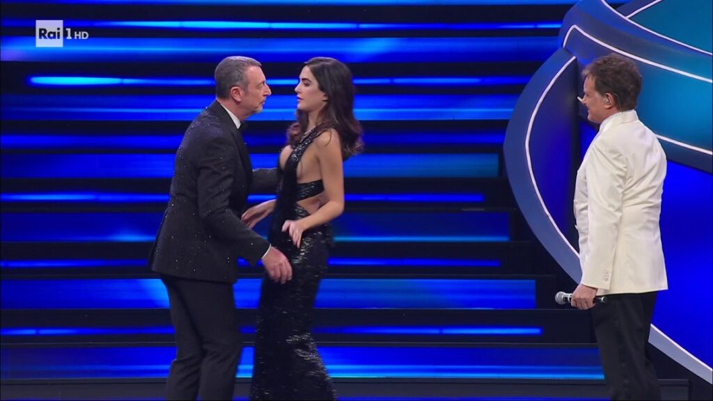 La spagnola, compagna di Raoul Bova, sul palco annuncia che il prossimo maggio affiancherà Massimo Ranieri su Rai Uno nello show in onda il sabato che vedrà protagonista il cantante, “Tutti i sogni ancora in volo”. Tornerà anche nella fiction “Un passo dal cielo”.