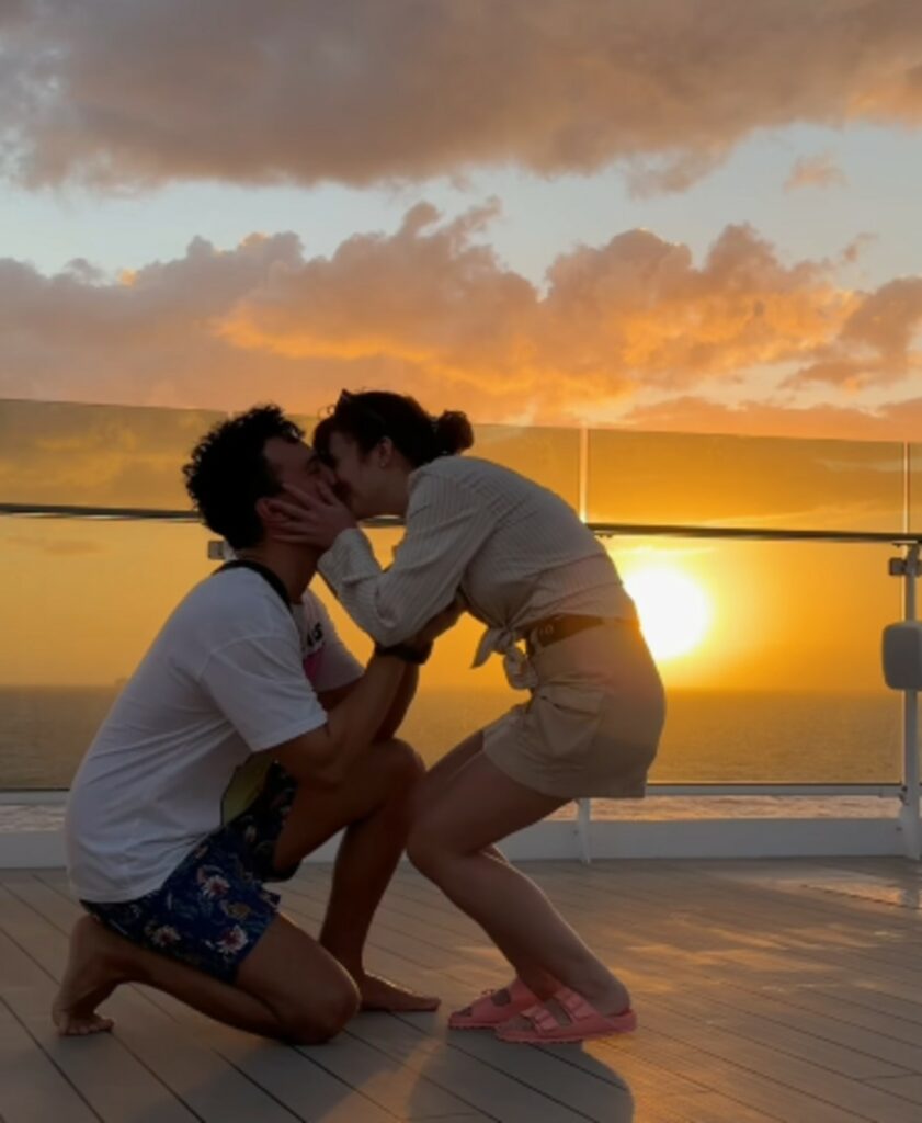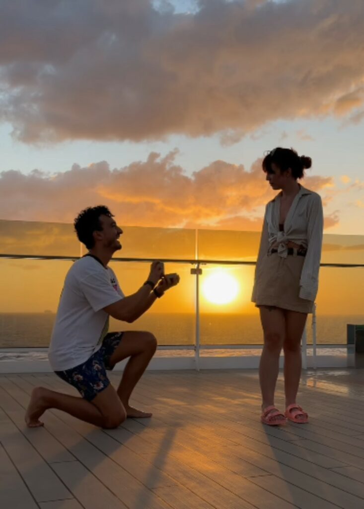 Condivide il suo romantico reel sul suo profilo social e scrive: “Vorrei dirti tante cose, più o meno già sentite. Invece mi limiterò a dire una cosa che le racchiude tutte: Amore mio vuoi sposarmi?”. “Amore mio…certo che sì”, commenta lei. L’ex allievo di Amici Andrea Dianetti sceglie un luogo speciale per la proposta di nozze alla fidanzata, lo fa su una nave da crociera. I due si stanno godendo un viaggio in mare tra le isole dei Caraibi.