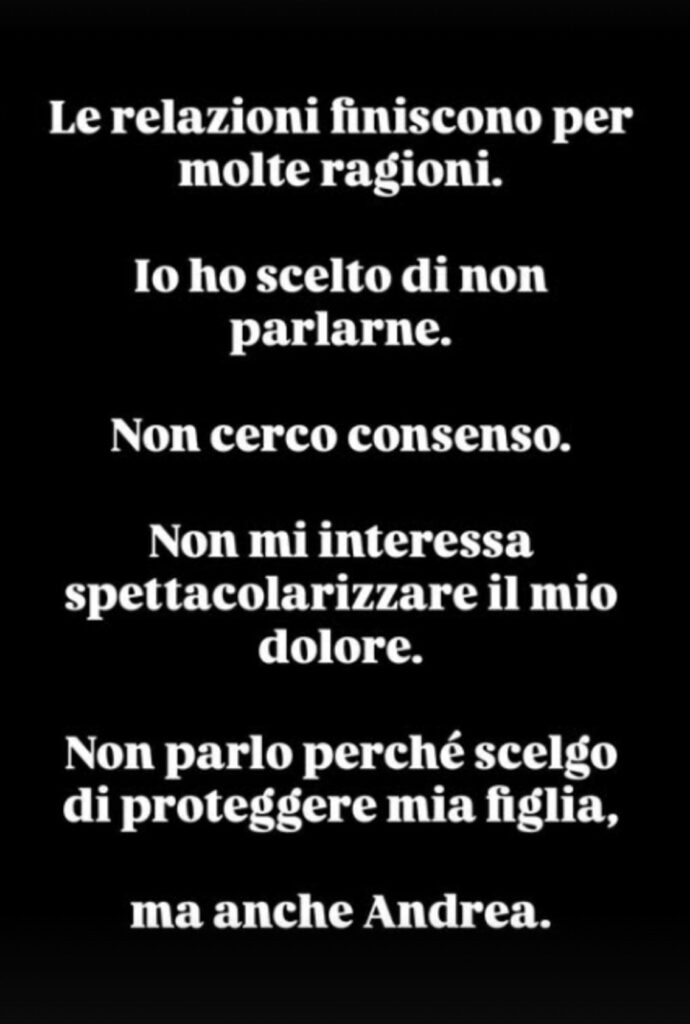 A caldo arriva la replica di Beatrice. Nelle sue IG Stories l'attrice e comica dura ribatte: "Le relazioni finiscono per molte ragioni. Io ho scelto di non parlare. Non cerco consenso. Non mi interessa spettacolarizzare il mio dolore. Non parlo perché scelgo di proteggere mia figlia, ma anche Andrea". E la chiude qui.