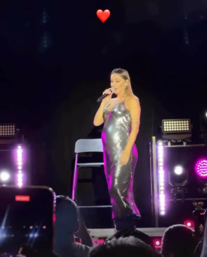 Ancora non si ferma, anzi. Anna Tatangelo al sesto mese continua ad esibirsi col pancione sempre più enorme. La cantante 38enne al suo concerto in occasione della Festa del Crocifisso, a Marcianise, in provincia di Caserta, indossa un lungo abito a canottiera color argento. Sfoggia con grande disinvoltura le forme da mamma sul palco: piena di energia, sorridente e bellissima, intona le sue canzoni, coinvolge il pubblico e balla. E’ incontenibile.