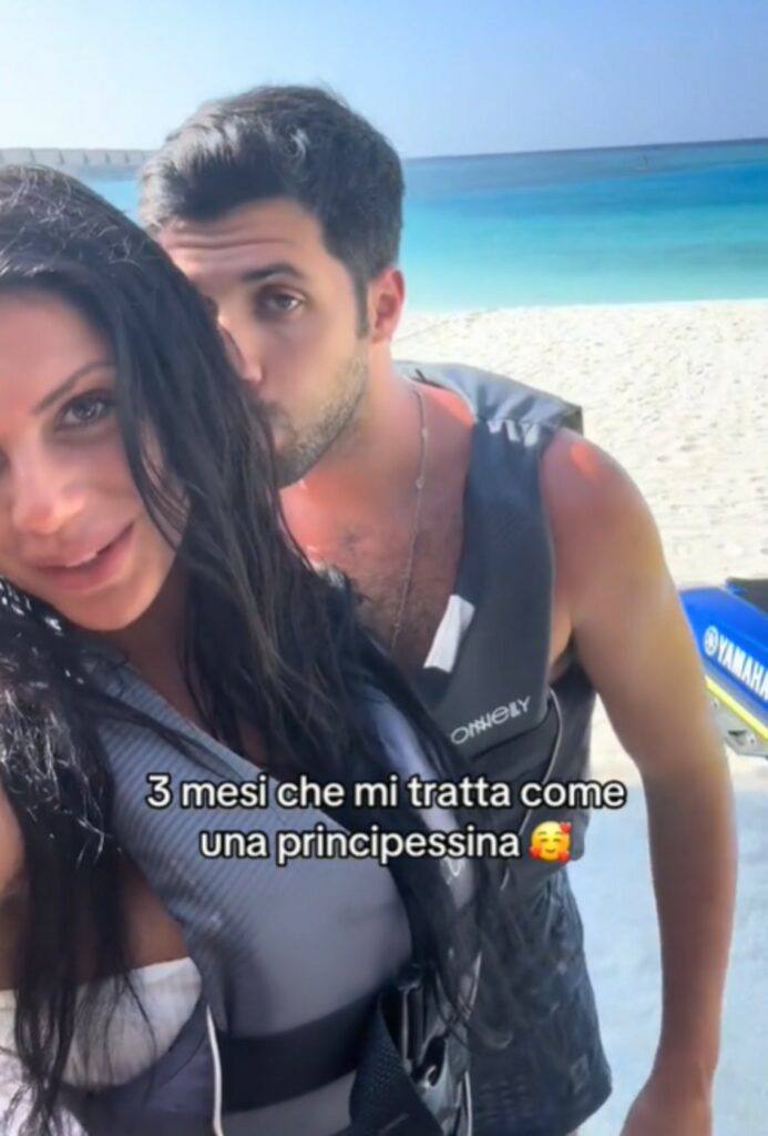 La ex ‘vippona’, ex fidanzata di Francesco Chiofalo ed Edoardo Donnamaria, con il rampollo 33enne pare aver trovato la felicità. Nella clip condivisa in cui è con l’imprenditore toscano scrive: “3 mesi che mi tratta come una principessina”.
