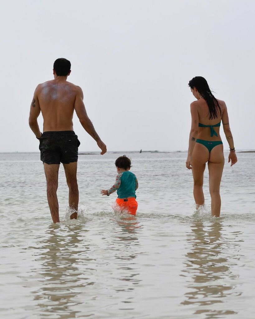 Cesare è il centro delle loro vite, mai lo avrebbero lasciato ai nonni per Capodanno: hanno voluto volare via dall’Italia insieme al figlioletto. Ospiti in villa di alcuni amici, i due si sono organizzati splendidamente e il bimbo è stato perfettamente a suo agio con i genitori, regalandosi, anche, grazie a mamma e papà, il primo bagno del 2025 al caldo.