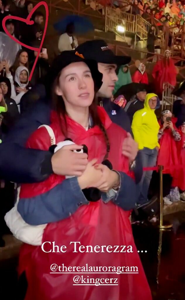 Aurora Ramazzotti e Goffredo Cerza non si perdono di vista un istante. Insieme, dopo l’annuncio della gravidanza sul social, i due si scambiano, amorevoli, coccole e tenerezze in pubblico. Al concerto di Eros Ramazzotti a Verona rimangono stretti l’una all’altro, rapiti dalle canzoni del padre della 25enne sul palco.