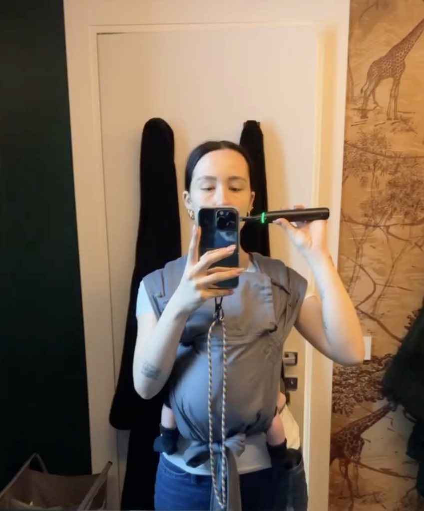 La 26enne nelle sue storie si fa vedere mentre è in bagno con lo spazzolino per i denti in bocca. Poi mette il rimmel sulle ciglia e anche il blush sulle guance. Il figlioletto è buono, buono, pacioso dentro il marsupio.
