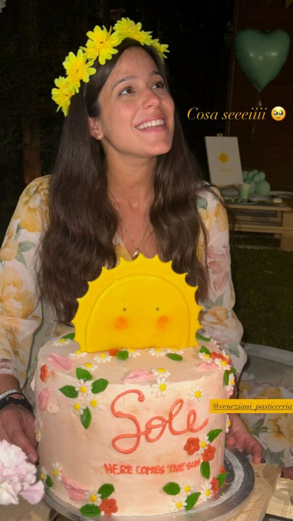 La mamma, dentista, specialista in Ortognatodonzia, condivide moltissimi scatti del party. Manca pochissimo alla nascita della bambina che avrà dal compagno Carlo Franceschini. Per l’occasione ha indossato un lungo e comodo abito a motivi floreali. Immancabile la coroncina di fiori, gialli come il sole, appunto, sulla testa.