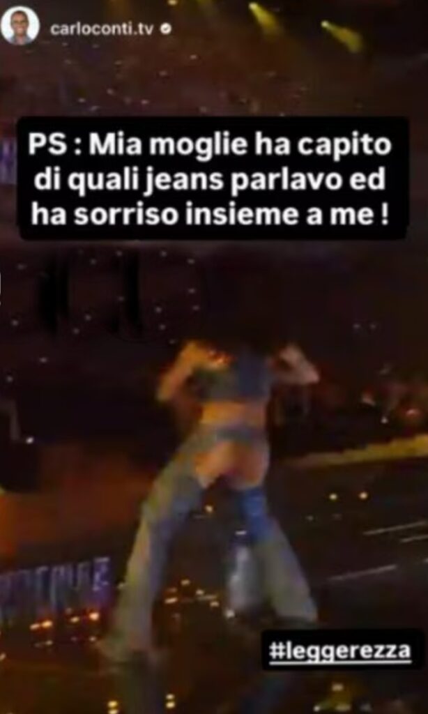 La danzatrice a distanza di qualche giorno, sbotta: “Ci tengo a puntualizzare che 'sto tizio di nome Carlo Conti mi ha letteralmente sessualizzata per dei pantaloni da show e, come se non bastasse, ha messo in imbarazzo la moglie palesando e minimizzando la gelosia e l’imposizione nel dirle cosa può indossare e cosa no”.