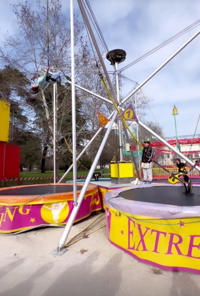 - La showgirl 39enne va alle giostre e fa le acrobazie sul tappeto elastico