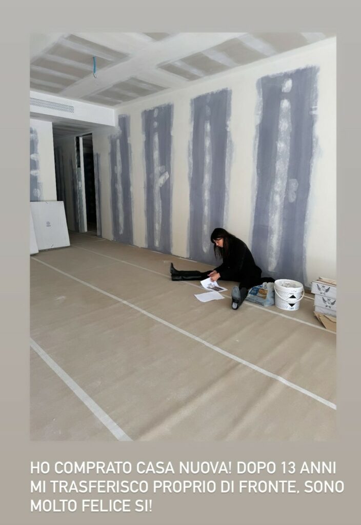 “Ho comprato casa nuova! Dopo 13 anni mi trasferisco proprio di fronte. Sono molto felice sì!”, sottolinea la 39enne. A corredo delle sue parole pubblica uno scatto in cui è immortalata seduta per terra nell’appartamento. Sta osservando con grande attenzione i disegni fatti dall’interior designer, l’architetto che ha coinvolto nella progettazione. Desidera scegliere personalmente come arredare i vari spazi delle quattro mura.