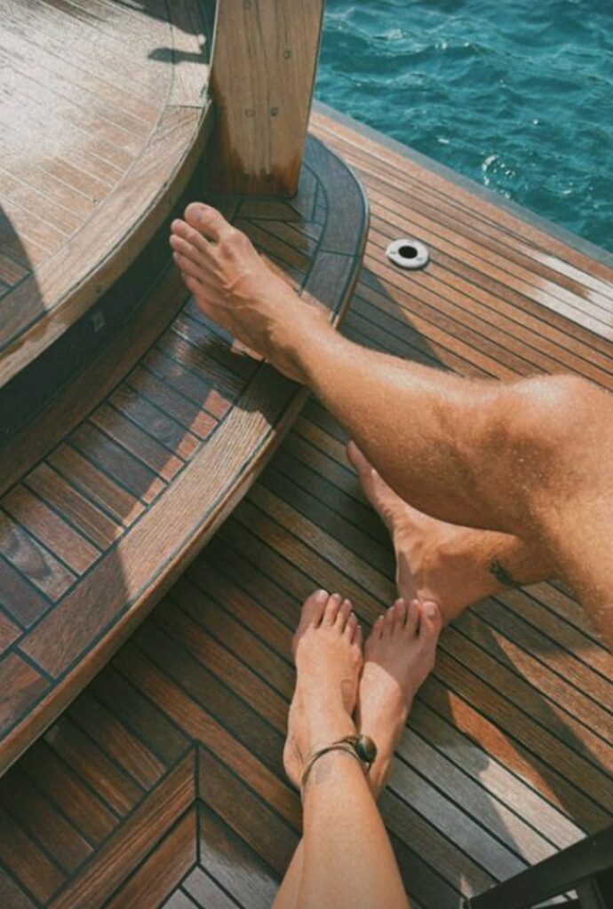La Rodriguez e De Martino si rilassano tra calici di vino gustati al tramonto, coccole e sbarchi fugaci a terra, dove immancabilmente i fan chiedono loro un selfie. Stefano è un vero capitano al timone del suo lussuoso gozzo Positano Open 38, la più grande delle imbarcazioni dei cantieri navali Nautica Esposito. La barca misura 11,50 metri e può portare fino sedici persone con sei posti letto. E’ comodissimo starci su.