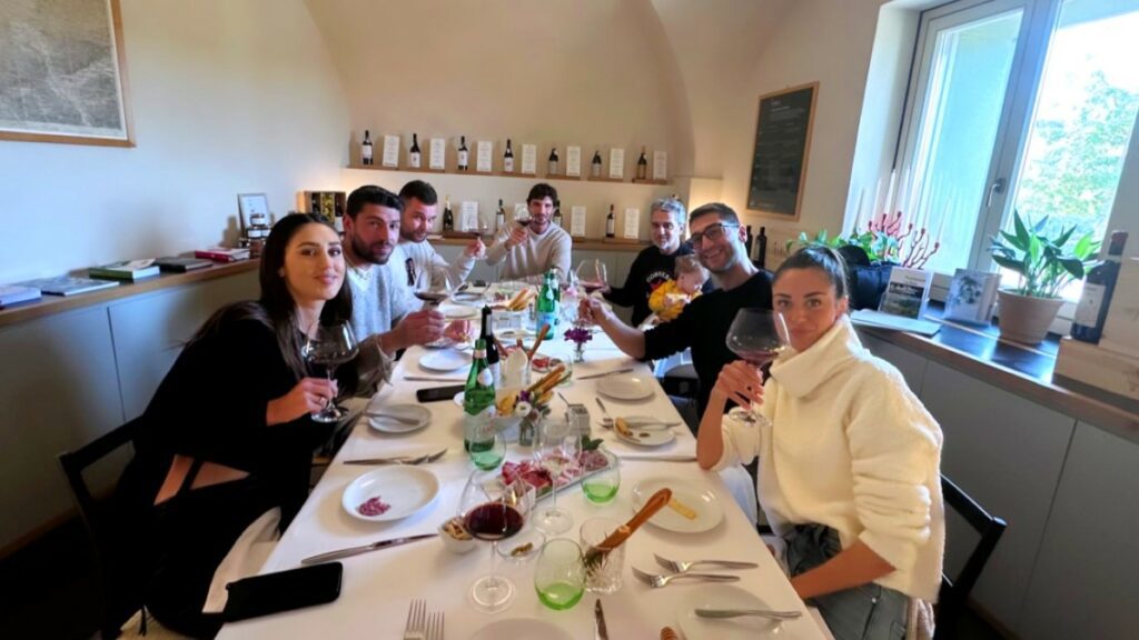 Belen e Stefano sono nel cuore del Gavi, a La Raia, azienda agricola della famiglia Rossi Cairo, cantina e locanda. A tavola insieme alla coppia ci sono Gustavo Rodriguez, reduce dal ricovero in ospedale per alcune cure mediche, Cecilia Rodriguez e il suo futuro marito Ignazio Moser, che hanno appena festeggiato il quinto anniversario insieme sui monti, arricchito dalla proposta di nozze. Ci sono anche Jeremias Rodriguez e Deborah Togni, sempre unitissimi. Pure mamma Veronica Cozzani è lì, artefice della foto di gruppo.