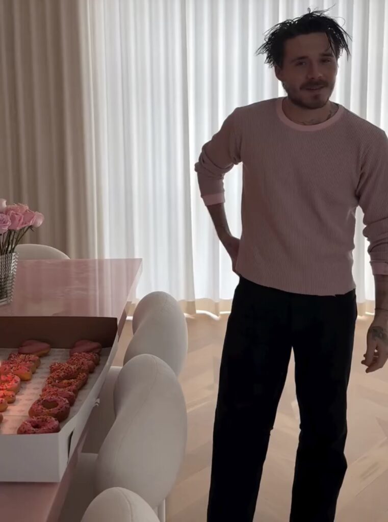 Brooklyn Beckham ha festeggiato il suo 27esimo compleanno in modo intimo, lontano dalla sua famiglia di origine. Nelle immagini condivise sui social da sua moglie Nicola Peltz appare in una stanza decorata con palloncini e addobbi, forse proprio dalla sua dolce metà. I due sono praticamente soli: sul tavolo si vedono dolci personalizzati e pacchi regalo, mentre Nicola riprende il marito che spegne le candeline.