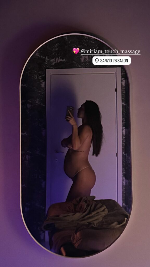 - Si fotografa davanti allo specchio sia dalla massaggiatrice che a casa, col pancione enorme in primo piano