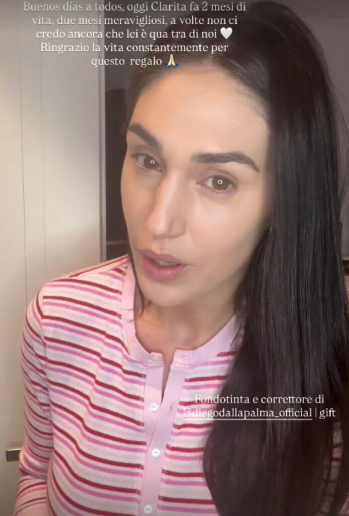 “Buenos dias a todos - scrive l’argentina, facendosi vedere mentre si trucca - Oggi Clarita fa 2 mesi di vita, due mesi meravigliosi, a volte non ci credo ancora che lei è qua tra noi. Ringrazio la vita costantemente per questo regalo”.