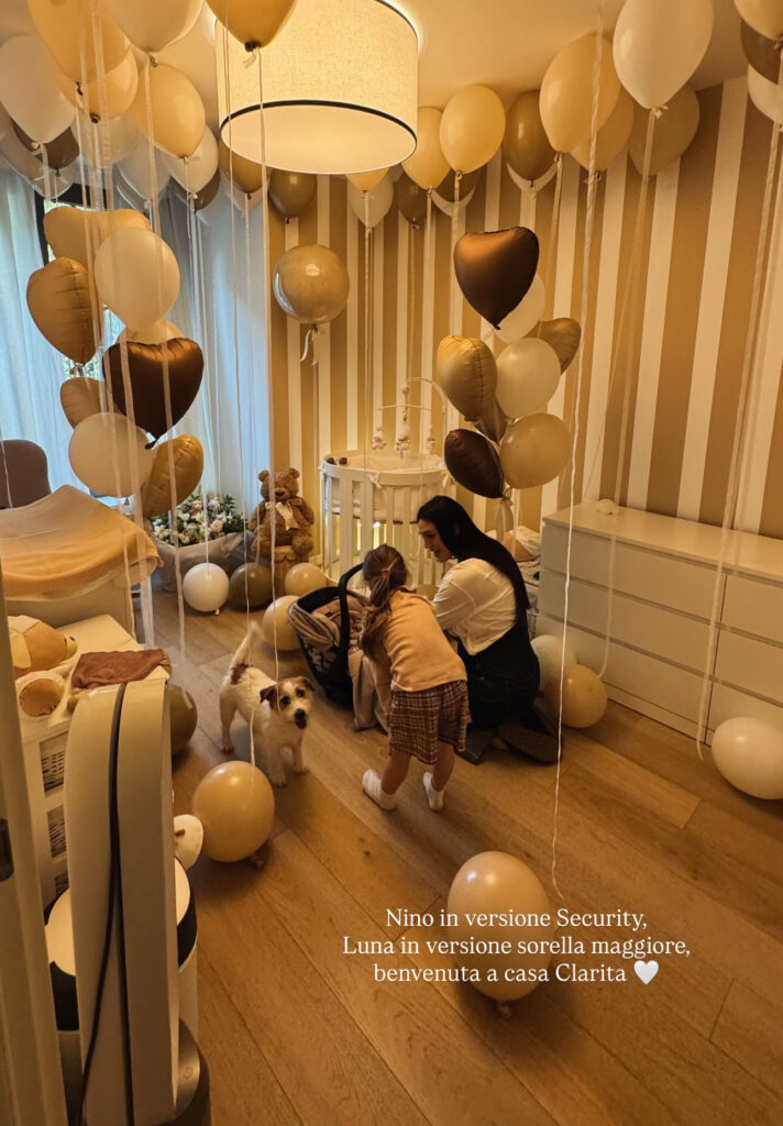 Chissà se anche lei era presente per dare il bentornato a casa ai neo genitori, o se Luna si è presentata magari con nonna Veronica Cozzani e nonno Gustavo.