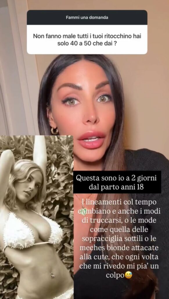 Nelle sue Storie risponde alle domande dei follower. Le chiedono dei tanti ritocchini fatti e le sottolineano: “Non fanno male? Hai solo 40 anni, a 50 che fai?”. Lei sorprende tutti e posta una sua foto inedita in cui appare assai diversa da com’è oggi. “Questa sono io a 2 giorni dal parto, anni 18”, scrive. Guendalina Tavassi, ex GF ed ex Isola, lascia di stucco i fan: ecco chi è il famoso personaggio tv ritratto nello scatto.