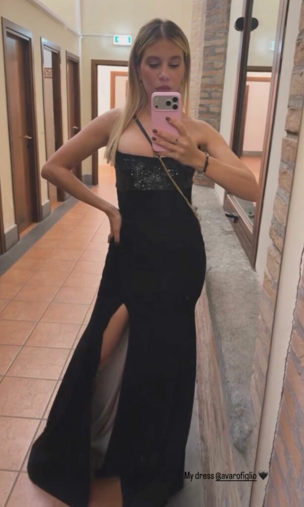 I due prima di uscire da casa si fotografano complici tra le mura domestiche. Poi si mostrano ai follower chic mentre camminano per arrivare sul red carpet. Assaporano il cocktail di benvenuto e si accomodano al tavolo per la cena. Ci sono moltissimi altri vip che ascoltano Al Bano cantare i suoi brani sul palco.