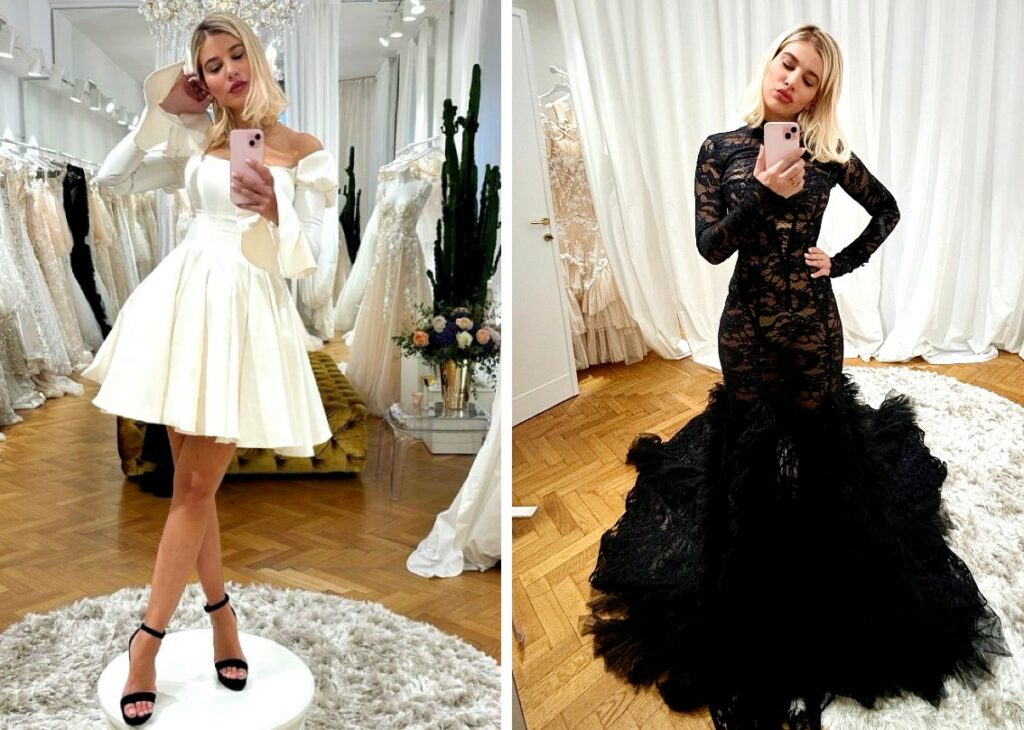 Si affida alle mani esperte della maison di cui va pazza, quella della ricercata stilista istraeliana che crea capolavori di haute couture, con tessuti di pregio e rifiniture fatte a mano. Questi vestiti esaltano la silhouette della sposa. E lei ne è la testimonianza: sta benissimo.