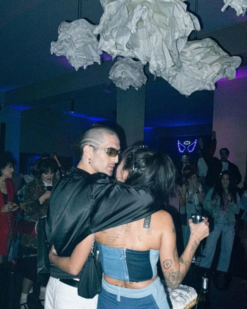 Il dress code ancora una volta conquista: è ispirato agli anni Novanta. La Soleri indossa top di jeans e pantalone a vita alta, lui un bomber, maglione over. C’è un tripudio di camicie larghe. Musica, drink, torta e dediche. ”Ti amo tanto”, gli scrive Giorgia.