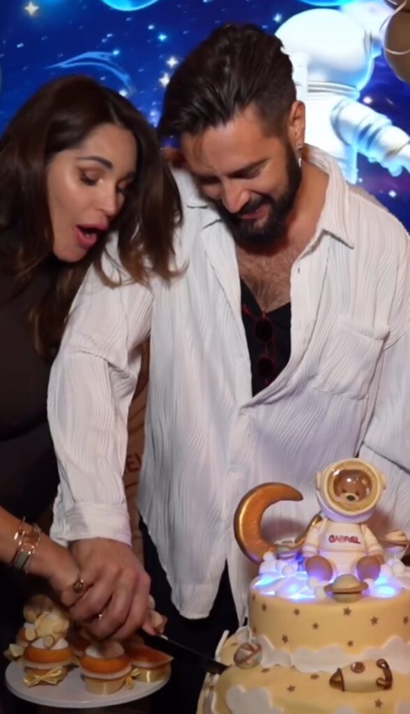 La torta è spettacolare, a due piani, un vero trionfo di cake designer. Sopra, con la pasta di zucchero, è stato realizzato un orsetto vestito da astronauta: è Gabriel. Al party c’è anche la musica, super grazie Stefania Liguori alla consolle. “Gabriel approva: appena partiva la musica già scalciava”, confessa Delia.