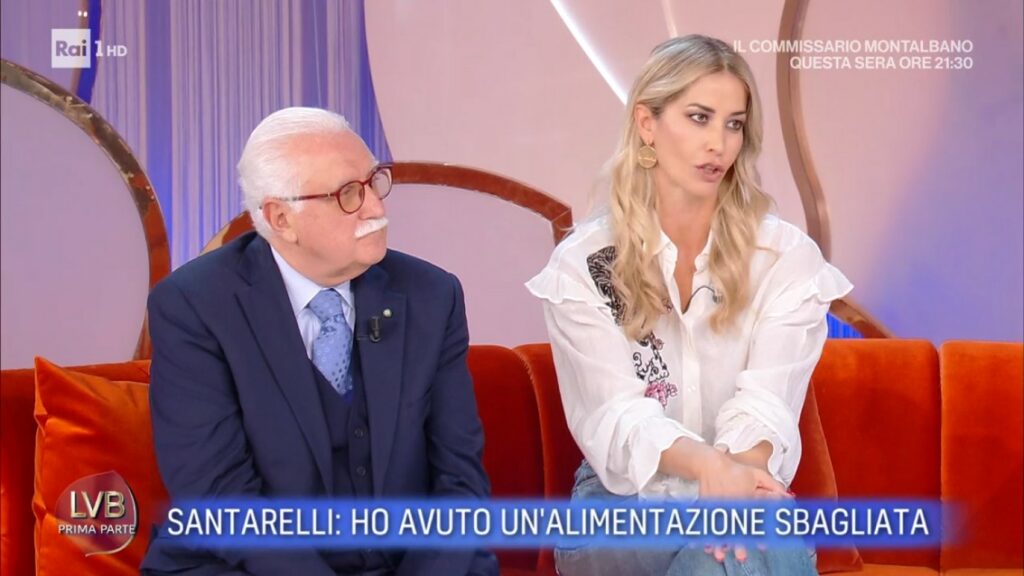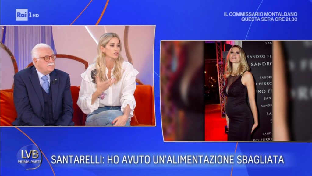 Nel salotto di Caterina Balivo si parla di diete e come sia giusto mangiare. “La mattina mangio kiwi con lo yogurt, anche la sera, prima di andare a dormire, verso le 22/22.30. Fanno benissimo”, dice la Santarelli, accanto a lei il professo Giorgio Calabrese, un vero esperto, le dà ragione. La conduttrice, molto amica di Elena, obietta: “Fino ai 23 anni non eri così brava…”. “Sì, hai ragione: teglie di pizza, panini con la mortadella. All’Eredità mi vedevi in formissima? Certo! Avevo 23 o 24 anni…”, replica la showgirl.