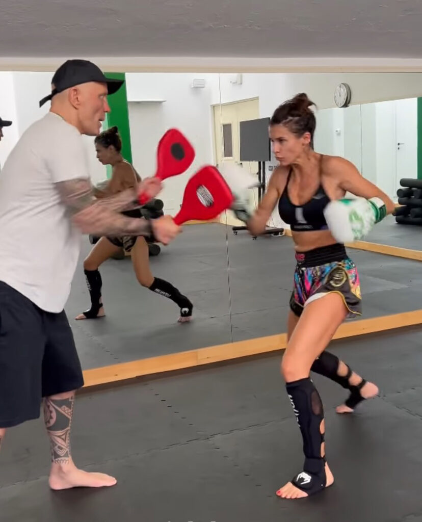 - L’ex velina le ha trasmesso la sua stessa passione per gli sport da combattimento