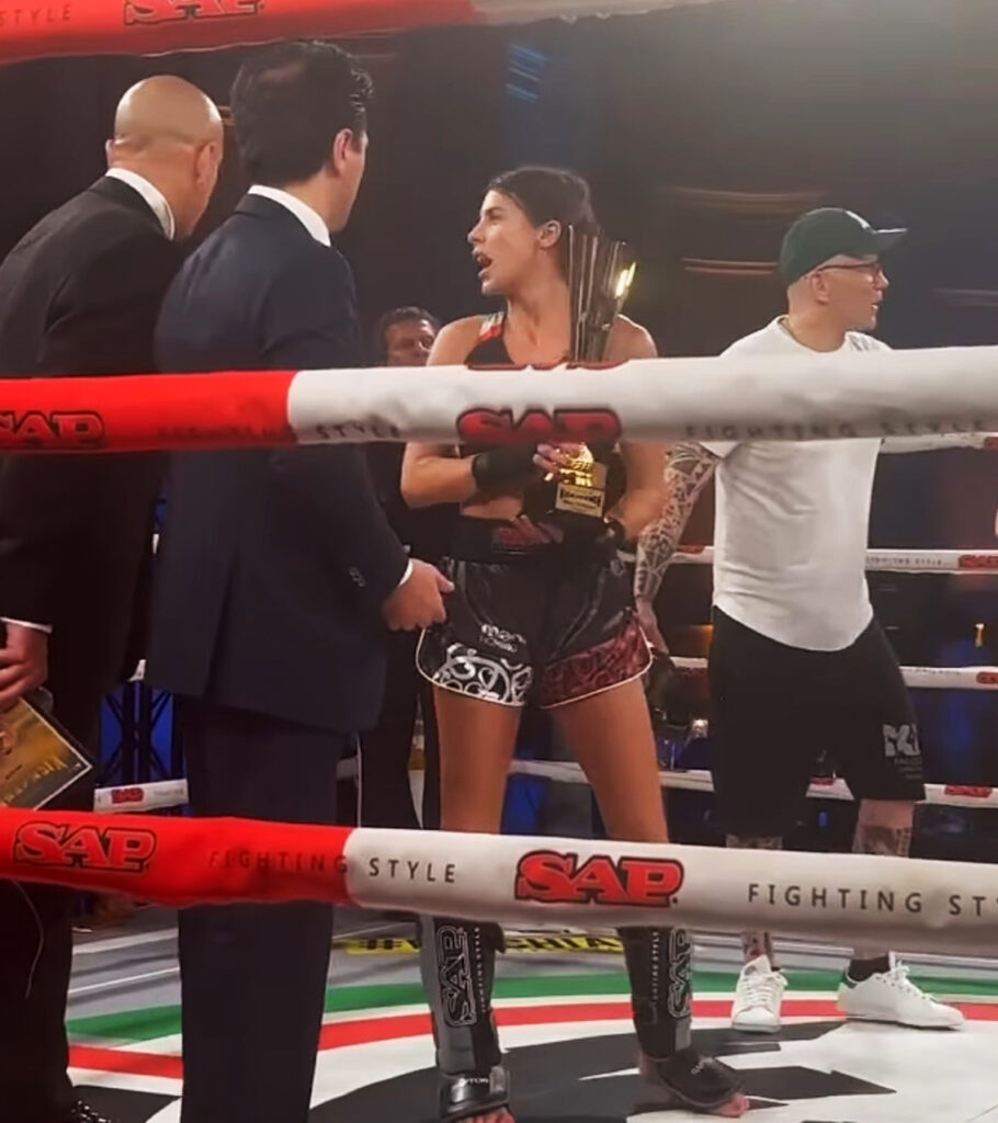 A bordo ring c’è il marito Brian Perri, c’è anche la figlia Skyler Eva, la sua prima tifosa. Prima dell’incontro ai microfoni di Fanpage aveva spiegato: "Pratico le arti marziali da circa otto ann, ma solo da quattro mi sono avvicinata al kickboxing: cercavo una disciplina che permettesse di lavorare più sui calci e sui pugni e questa fa al caso mio. Non sembra, ma è innanzitutto uno sport mentale, che richiede e allena la concentrazione. Io, da persona spontanea e istintiva, spesso tendo a perderla, in questo senso traggo grande giovamento dal kickboxing, che in più mi aiuta a mantenermi in forma".