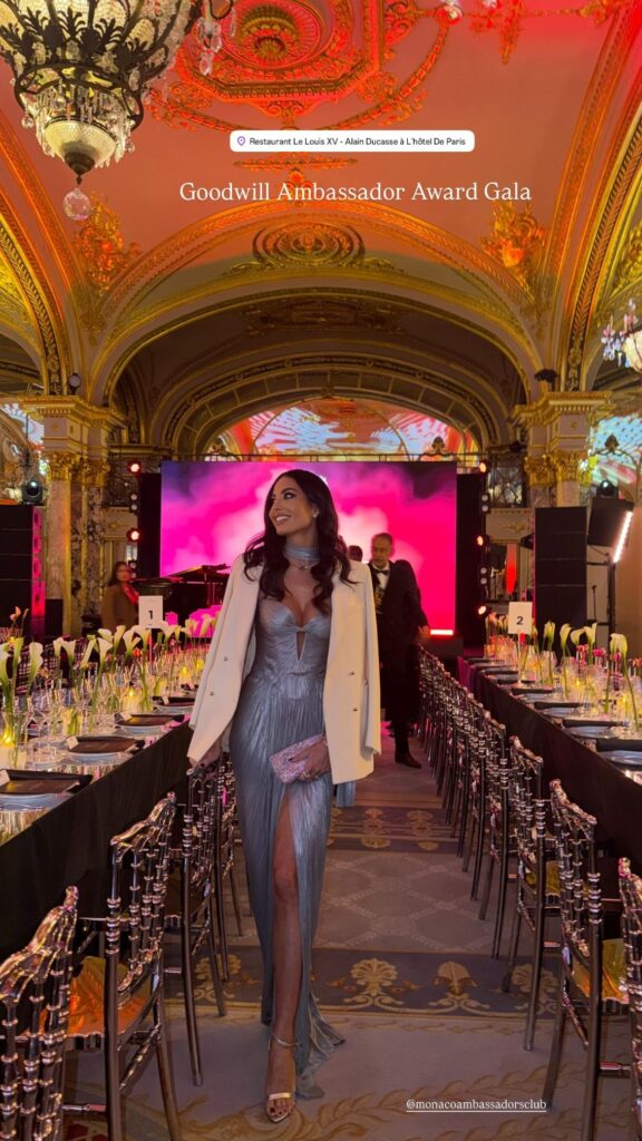 La calabrese 46enne si concede una serata mondana di quelle davvero imperdibili. Tutto va in scena all’Hotel de Paris. Il premio Ambasciatore di buona volontà viene consegnato ogni anno, sotto l’alto patrocinio del principe Alberto di Monaco, a personalità di spicco che, attraverso la loro attività professionale e personale, contribuiscono a promuovere l'immagine, i valori e l'influenza del Principato di Monaco a livello internazionale.