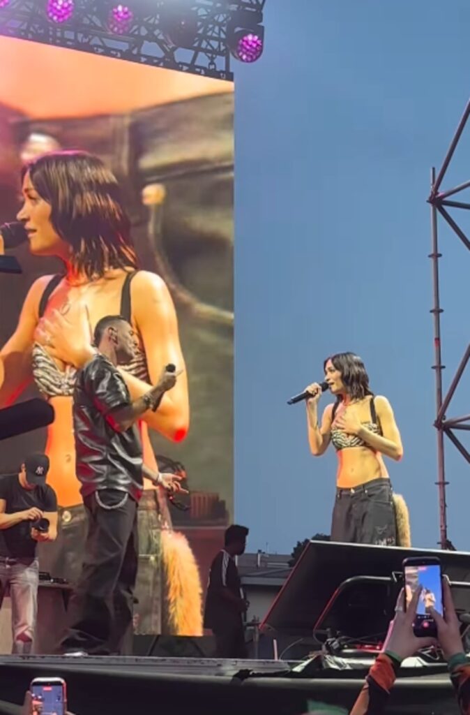 Al Marra Block Party a Milano la Di Patrizi e il rapper 46enne si esibiscono in Niente Canzoni d’Amore, pezzo che lui ha pubblicato nel 2016. La canzone inizialmente era un featuring con Federica Abbate, nel 2020, però, Elodie ha inciso una propria versione del singolo, inserendola nel suo terzo disco. La reunion artistica entusiasma tutti. Al termine dell’esibizione i due si abbracciano. “Voglio che facciate un urlo per Elodie, che sotto, sotto è una bandita come noi. Grazie, ti voglio bene”, dice lui.
